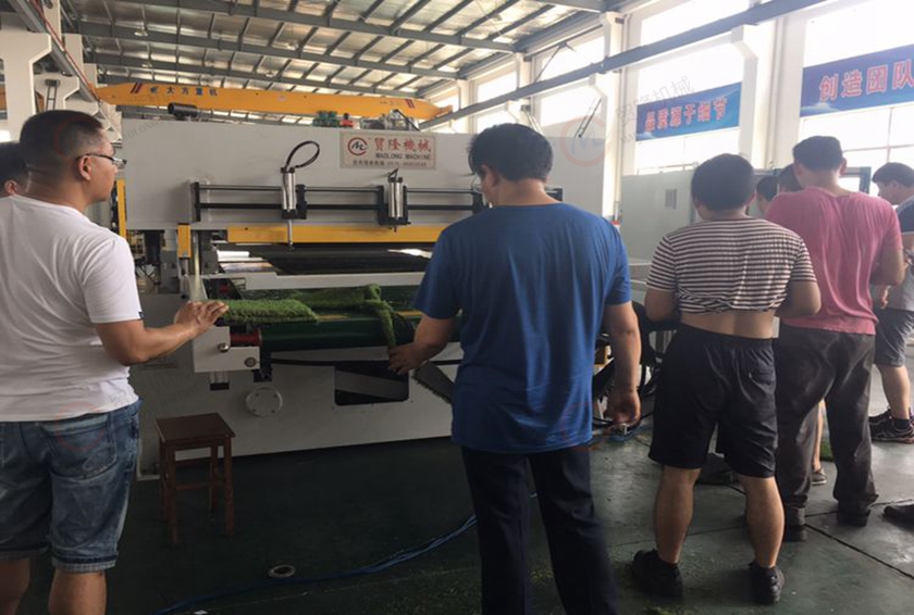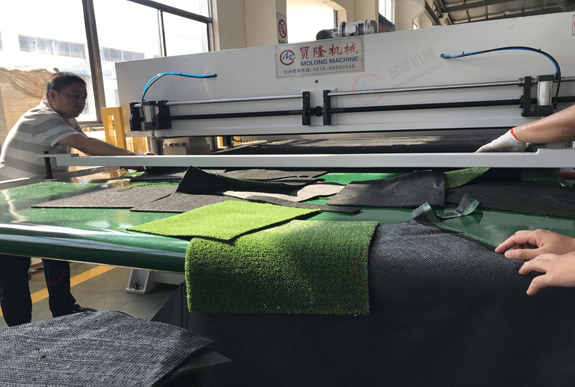 本机主要适用于薄海绵、EVA、碳纤维材料、吸音棉、隔音棉等材料的成型模切作业。此客户是生产仿真草坪地毯的厂商。卷材、片材、硬料、软料均可作业。产品技术性能指标达国际先进水平,可配合生产流水线作业。自动化程度高,节省人工,节省原材料。