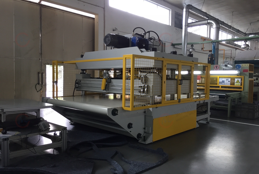 本机主要适用于汽车内饰件、汽车顶棚、隔热隔音毛毡等柔性材料的成型模切作业。卷材、硬料、软料均可作业。产品技术性能指标达国际先进水平,可配合生产流水线作业。图片中客户是做汽车地毯毛毡一次成型的,机器直接联系客户的生产线运作,自动化程度高,节省人工,节省原材料。